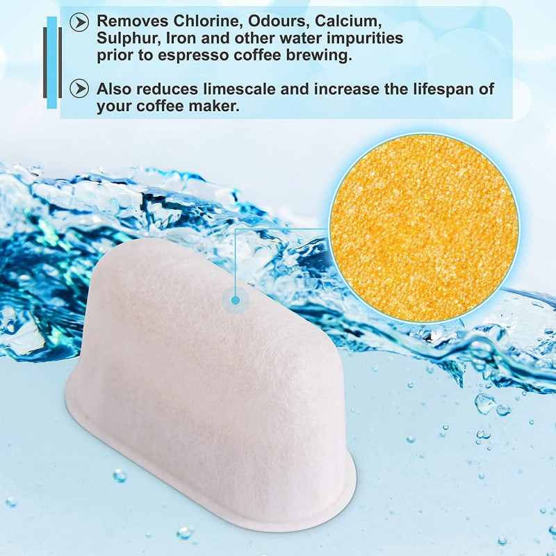 - Superior quality: All water filters are made out of resin in order to protect your Breville coffee machine from the damages posed by hard water buildup also eliminate the smell and taste of chlorine, sulfur and iron as well as some minerals, soften the hard water with a progress called ion exchange.