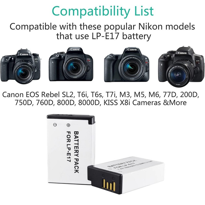 - Power your specifically for Canon LP-E17 Camera Batteries.