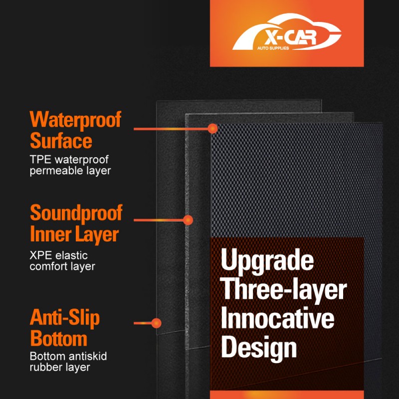 • Triple-Layer Protection: The first layer features a hydro-sealed rubber surface for weatherproofing, the middle layer dampens road noise with sound-dampening foam, and the third layer employs non-slip, ultra-grip technology to keep the mats securely in place.