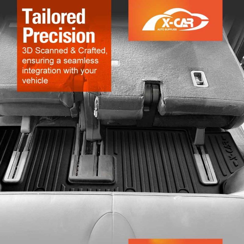 - Note: This X-CAR boot mat is new design and it will be a perfect fit whether the extra two seats folding down or raising up. And Pre-attached Velcro Stickers hold the mat to the seat's back while the seats are using.
