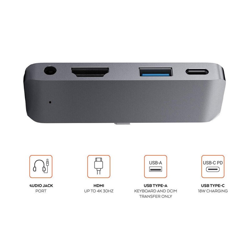 - USB-C POWER DELIVERY-Allows two-way charging to quickly power your iPad Pro, or as a portable power bank (when connected to the iPad) to charge connected USB-C devices. We recommend using a power adapter of at least 30W to maintain the charging speed Restore your peripherals-Type-C Mobile Pro Hub provides a 3.5mm headphone jack, and an additional USB 3.0 port for photo media transfer
