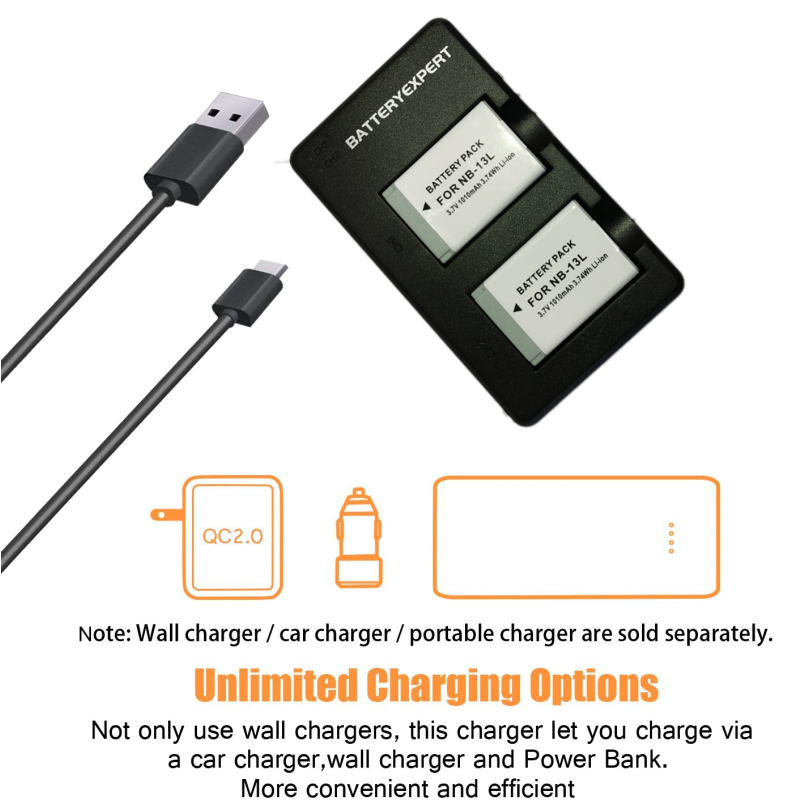 External USB Dual Charger for Canon NB-13L Camera Battery
