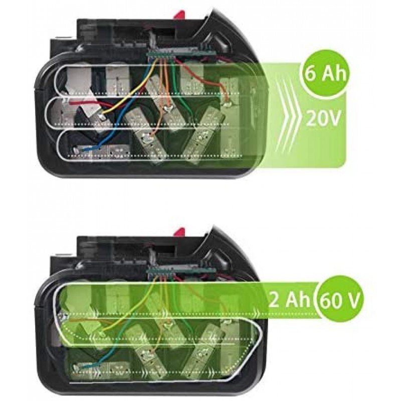 - The dual-voltage 18V/20V, 54V/60V MAX battery automatically changes voltage when you change tools.
