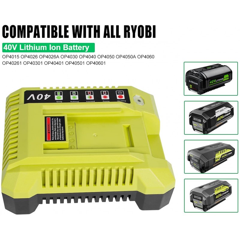 • 【40V Replacement Battery Charger for Ryobi】Fully compatible with RYOBI 40-Volt lithium-ion battery models OP4015 OP4026 OP4026A OP4030 OP4040 OP4050 OP4050A OP4060 OP40261 OP40301 OP40401 OP40501 OP40601, etc.