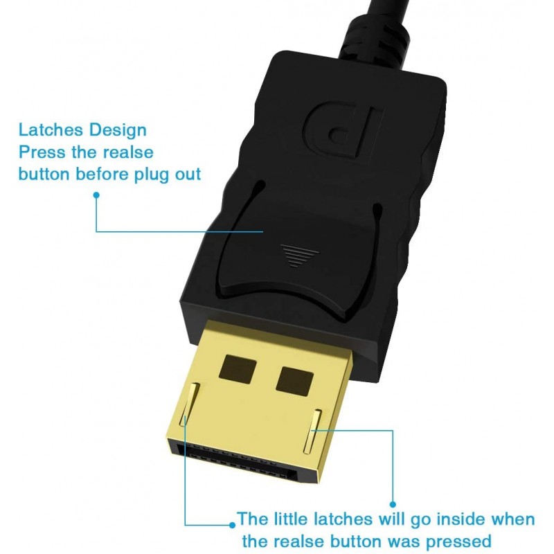 - Display to VGA with latches provides a secure and stable connection. Remember to press the release button before you plug out. NOTE: It is not Bi-directional, this is a unidirectional DP port to VGA port cable.