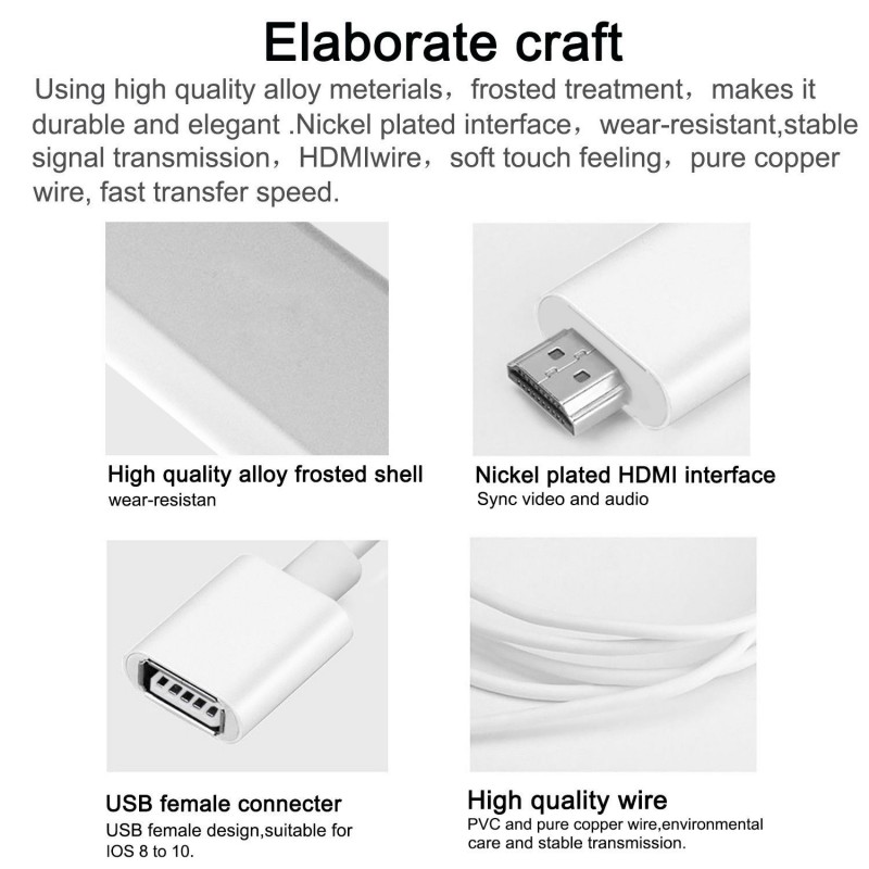 The Lightning to HDMI Adapter supports 1080P high digital signal output. Enjoy your local or online entertainment including movies, TV shows, music, video, audio, photos and more easily on your favorite HDTV or projector in up to 1080P HD resolution. The Lightning digital AV adapter offers you effortless and perfect big screen experience for your compatible iPhone and iPad. Besides, it also supports fast charging for your device with the USB cable.