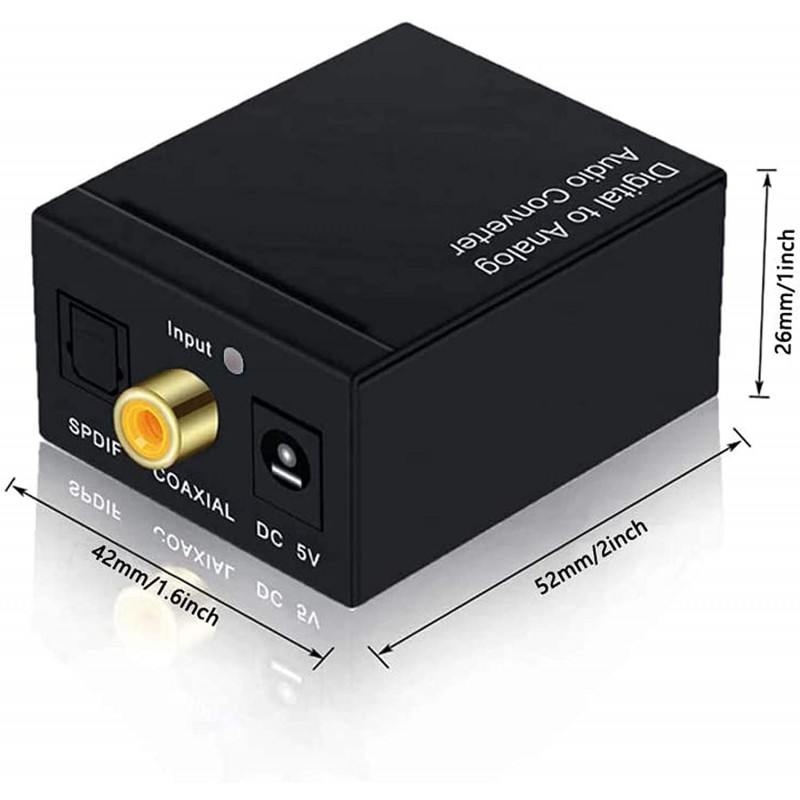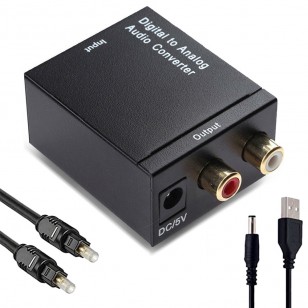 - Converts Coaxial or Toslink digital audio signals to analog L/R audio