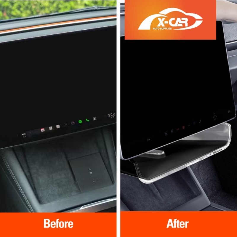 - [Efficient Organization and Smart Storage] : Upgrade your Model 3 Highland 2024 with the Center Console Organizer Tray. Featuring dedicated compartments, an under-screen storage box, and a behind-screen tray, it maximizes space and ensures easy access. The HD acrylic material blend style and functionality. Maximize space with the under-screen box and hidden compartment behind the middle screen. Features anti-slip rubber and a built-in magnet for secure storage of essentials like keys, phones, and sunglasses.