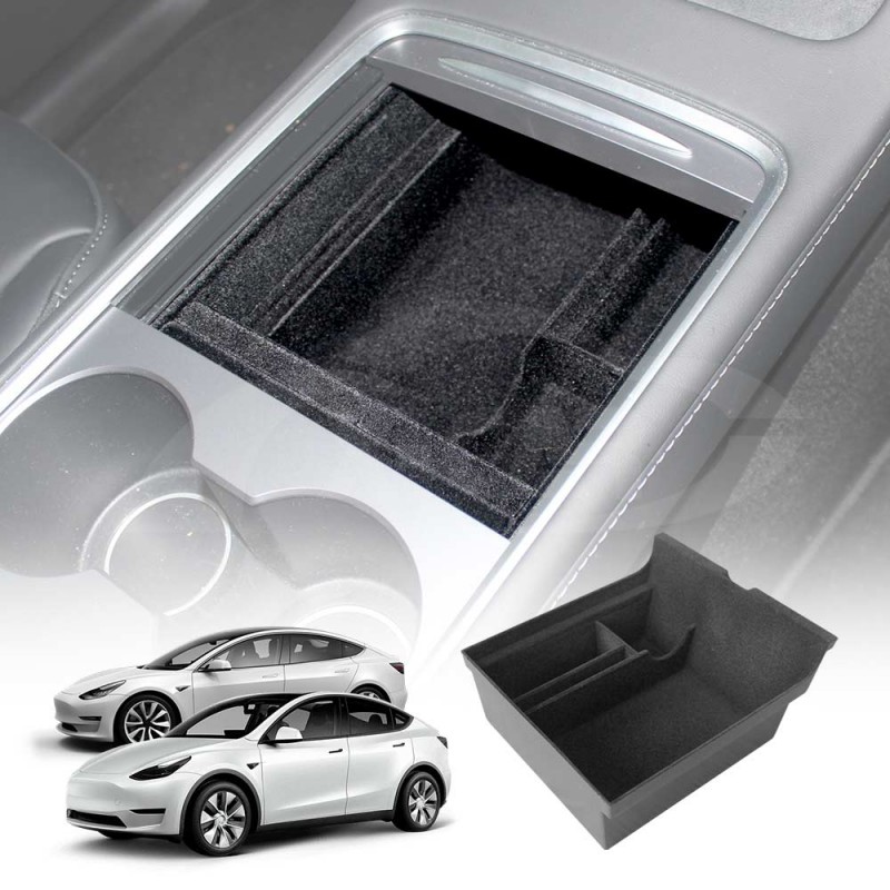 • [Premium Material]: 1. Sturdy & Durable ABS housing: Matte finish, Perfect polish—no hurt to your hands and beloved Tesla; 2. Flocked liner: Anti-slipping, Anti-rattling sound—Keep items safe and silent while driving/Velvety texture—soft to touch