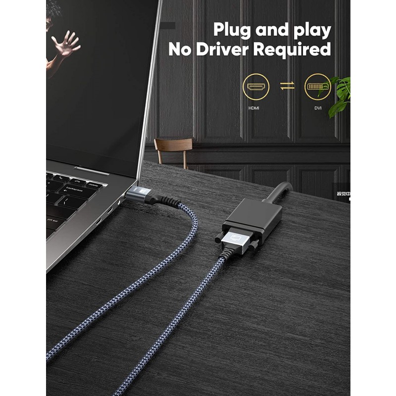 HDMI to DVI Cable Bi-Directional Nylon Braid 1080P DVI to HDMI High Speed Adapter Cable Gold Plated for PS4 PS3 TV PC
