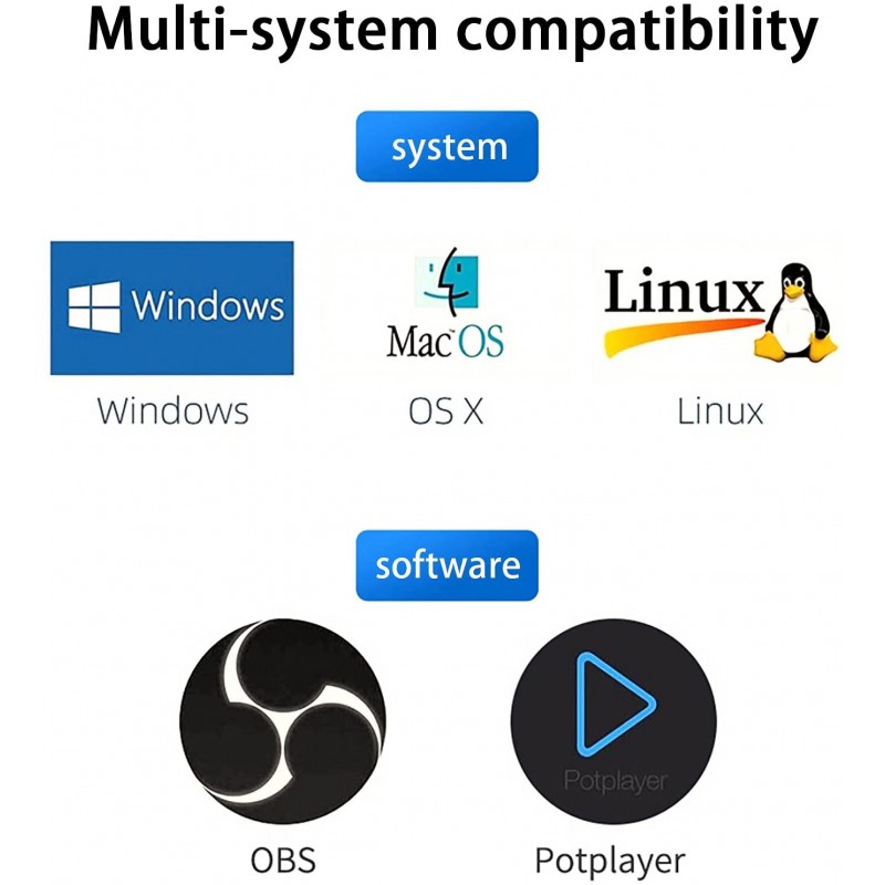 - Wide compatibility: Support Windows, Linux, Mac OS mainstream systems equipped with OBS/Potplayer and other recording software.