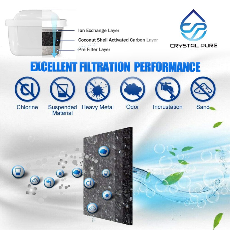 • EXACT COMPATIBILITY: Crystal Pure Filter cartridges for water jugs, fits for Mavea Maxtra 1001495,1001122,105731, 106832; MAXTRA+, Maxtra Plus and also fits for All Maxtra Jugs, Marella Cool, Style Jug, Fun Jug, Mavea Elemaris XL, Aluna Cool, Fjord Jug, Brita Flow Water Tank, Turapur Pitcher, LEVOIT Pitcher Water Filters.