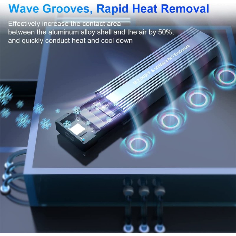 - M.2 Enclosure Metal Aluminum casing provides protection and has good heat dissipation.