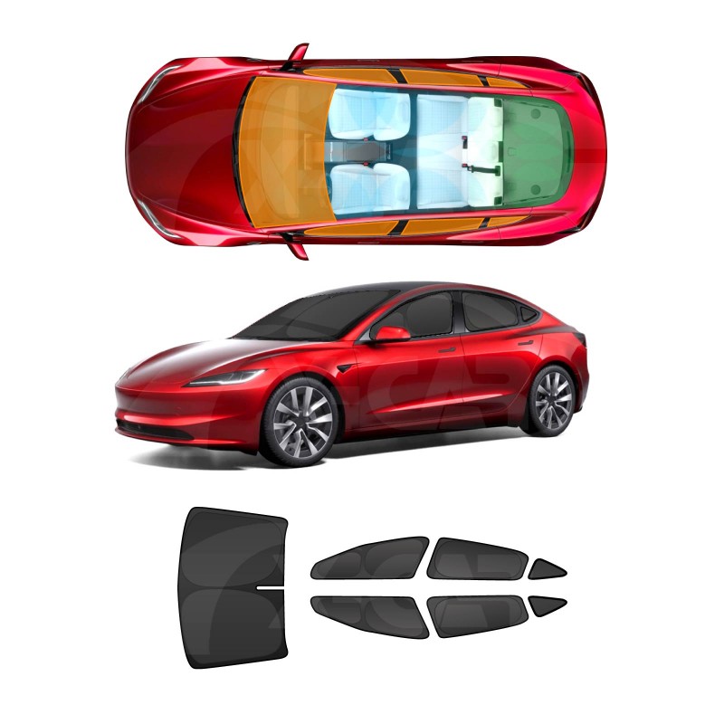 - Custom Fit: Perfectly fit for Tesla Model 3 Highland 2023-Current. Highly precise model design fits the edges exactly and just put it in your car windshield & full rear & side window & triangular window. According to the car size design,100% fit your car and does not need a trim.