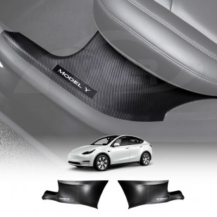 - Tesla Model Y 2022-2025 Carbon Fiber Style Rear Door Sill Plate Protector Car Threshold Scuff Trim Covers Guards