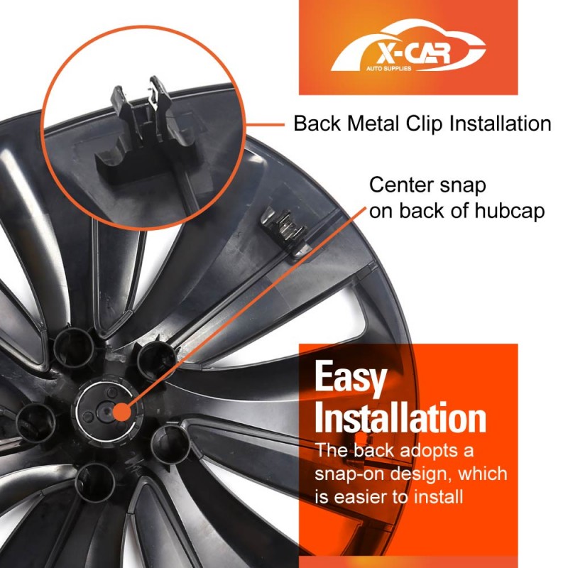 - Snap-on Design:Align the air nozzle on the car with the notch in the new wheel cover and press firmly to install the new wheel cover. Change the look of your Tesla within seconds.