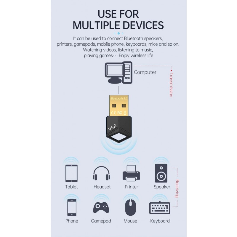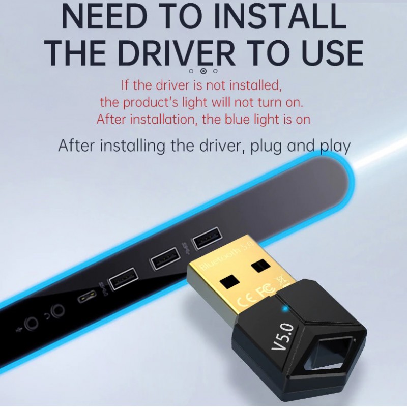 - Mini USB Bluetooth 5.0 adapter with high speed up to 3Mbps.
