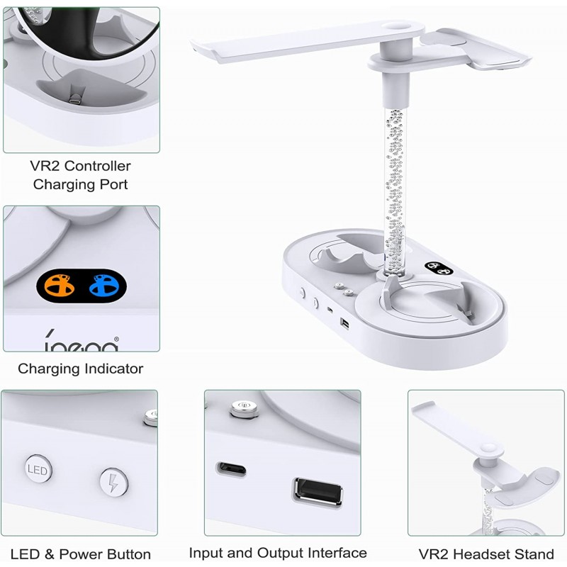 - All-in-1 PSVR 2 Controller Charging Station -- Package includes: 1 x Controller Charging station for PlayStation VR2, 4 x Magnetic Type-C connector, 1 x USB C cable, 1 x User guide. When not playing games, the RGB charging station can also be used as a display for VR2 devices. What’s more, the charging base stylish design and colored lights add a sleek aesthetic to your PlayStation VR2 console. (It is not recommended to use the USB C adapter to directly plug into the VR Headset to charge).