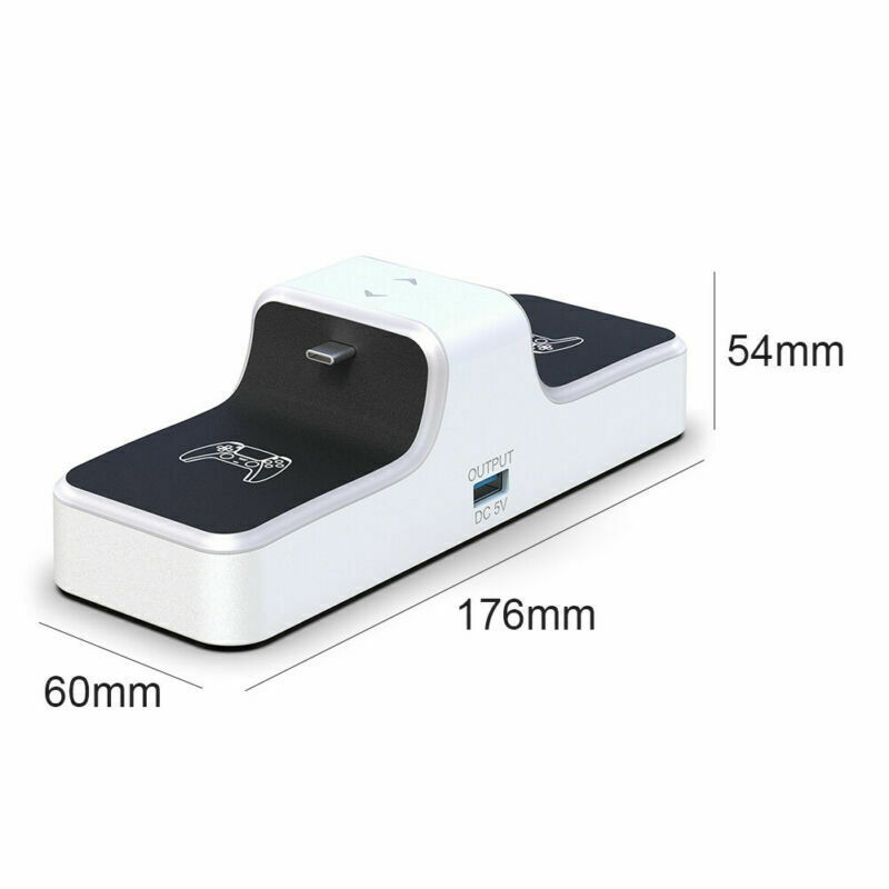 - [Dual PS5 Controller Charging Dock] - Built-in 2 USB Type C fast charging ports, you can safely charge two dualsense Sony Playstation 5 Controllers at the same time, the full charge time takes 3-4 hours (please use PS5 console USB port or 5V/2A / higher power source adapter to ensure fast charging)