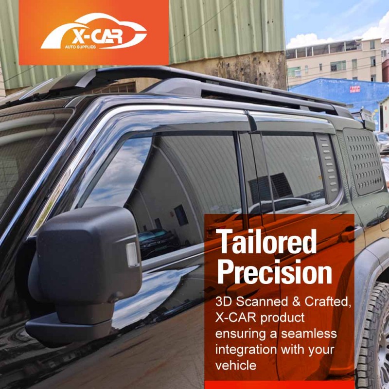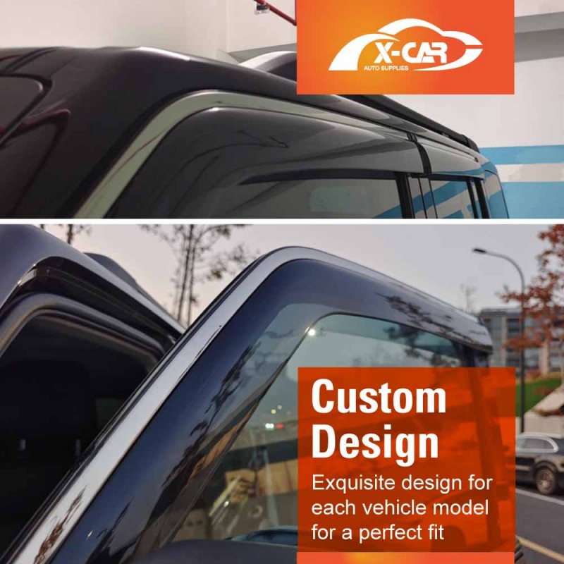 - Maximum Fresh Air Enjoyment. Let the fresh air in and keep the rain out! X-CAR side window visor spans the entire window channel, allowing you to open your windows and enjoy fresh air even when raining. It also reduces wind noise and minimizes turbulence with open windows.