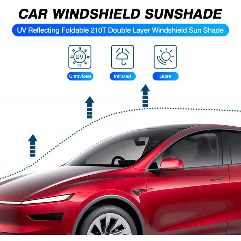 - WindScreen Sun Shade for Tesla Model Y Juniper 2025-Onwards Blocks UV Rays Foldable Custom Sun Visor Protector